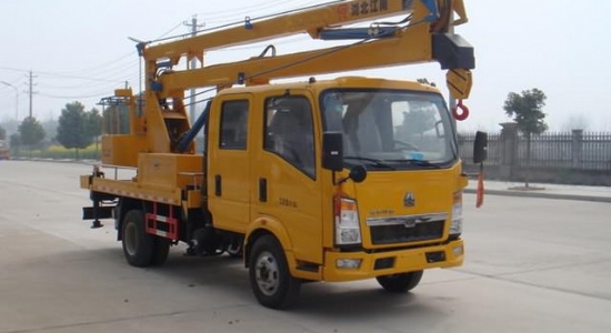最大作業(yè)高度:14米 最大作業(yè)幅度:6.5米 ★采用重汽豪沃原廠底盤加裝三節(jié)折臂液壓舉升專用裝置 ★環(huán)保項(xiàng)到國家機(jī)動車第四階段排放標(biāo)準(zhǔn)(國Ⅳ) ★采用國產(chǎn)、進(jìn)口換向閥及液壓油缸,換向平穩(wěn),操作靈活方便,液壓系統(tǒng)實(shí)現(xiàn)上下車互鎖,過載保護(hù),油缸安全自鎖 ★轉(zhuǎn)臺、工作斗雙工位操作 ★支腿與工作臂互鎖,安全可靠,防止誤操作 ★H型支腿,跨距大,穩(wěn)定性好,支腿即可獨(dú)立伸縮,又可聯(lián)動,裝有支腿報(bào)閃燈,用于作業(yè)時(shí)支腿示廓,發(fā)出光報(bào)警信號 ★工作斗自動調(diào)平,外置拉桿強(qiáng)制平衡 ●選裝有1噸吊鉤(吊鉤伸縮800-1000mm) ●選裝防止誤操作過位的自動保護(hù)系統(tǒng) ●選裝應(yīng)急動力源,可實(shí)現(xiàn)緊急收車 ●選裝電液比例調(diào)速的電子控制系統(tǒng),用于定點(diǎn)維修時(shí)熄火發(fā)動,節(jié)約能源/電控系統(tǒng)可選裝地面無線遙控操作系統(tǒng) |