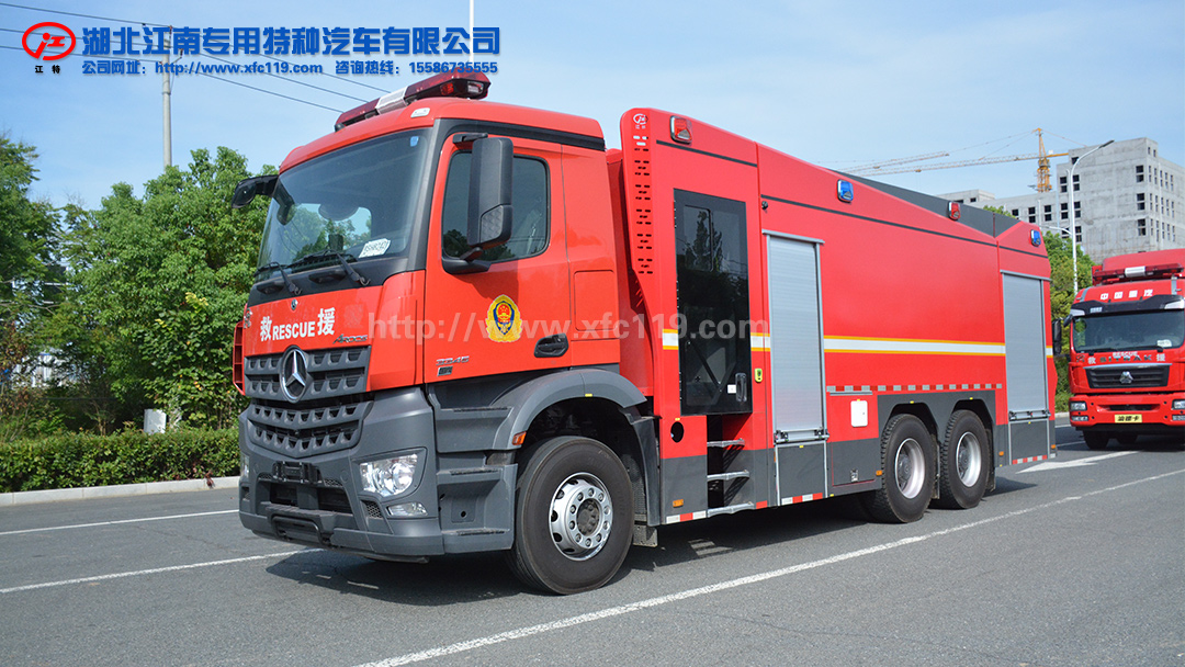 湖北江南專用特種汽車有限公司JDF5320GXFPM160/A6型泡沫消防車產品,專用于突發火災撲救及其他應急保障工作。該車主要特點: