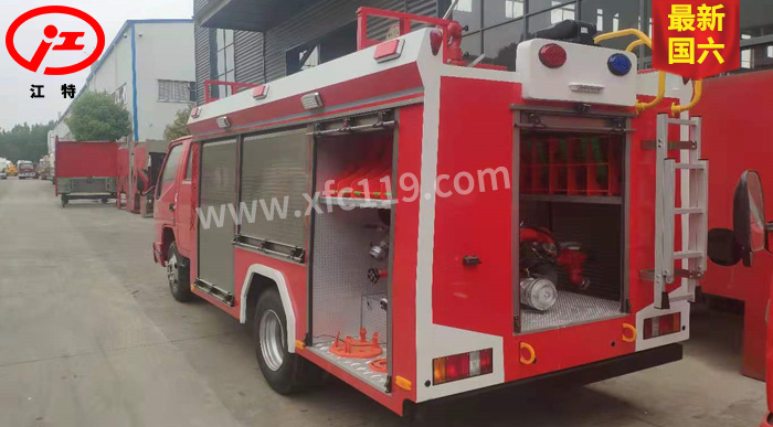 JDF5060GXFSG15/J6型國六水罐消防車,采用江鈴JX1061TSGA26底盤改裝而成。整車由消防員乘員室和車身兩大部分組成,