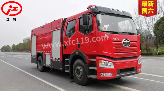 JDF5192GXFPM80/C6型泡沫消防車為國六消防車車型,采用采用由中國第一汽車集團有限公司生產的CA5200TXFP66K1L2E6型消防車二類底盤(ID:3314362)改裝而成的消防用車。整車由消防員乘員室和車身兩大部分組成,乘員室為單排改雙排,可乘坐2+4人,該車為外露罐結構,車身前部為器材箱,中部為罐體,后部為泵房。載液罐體為優質碳鋼,內部噴涂環氧底漆及環氧瀝青漆,與底盤采用彈性連接,載水量5800g,泡沫液量2200kg,裝備了上海茸申消防設備有限公司生產CB10/60-RS型常壓消防泵,額定流量60L/S,車頂安裝成都威斯特消防機械有限公司生產的PL8/48型車用消防炮。該車最大的特點是載液量大、操控性好、維修簡便。可廣泛應用于公安消防隊、廠礦企業及社區、碼頭等場所,撲救大型油類火災和一般物質火災。整車消防性能符合GB7956-2014標準要求;底盤通過國家強制性產品認證;發動機排放符合GB17691-2018國Ⅵ 第六階段限值的規定要求;整車通過國家消防裝備質量監督檢驗中心檢測(報告編號:Zb202030893)并已列入工信部汽車新產品公告