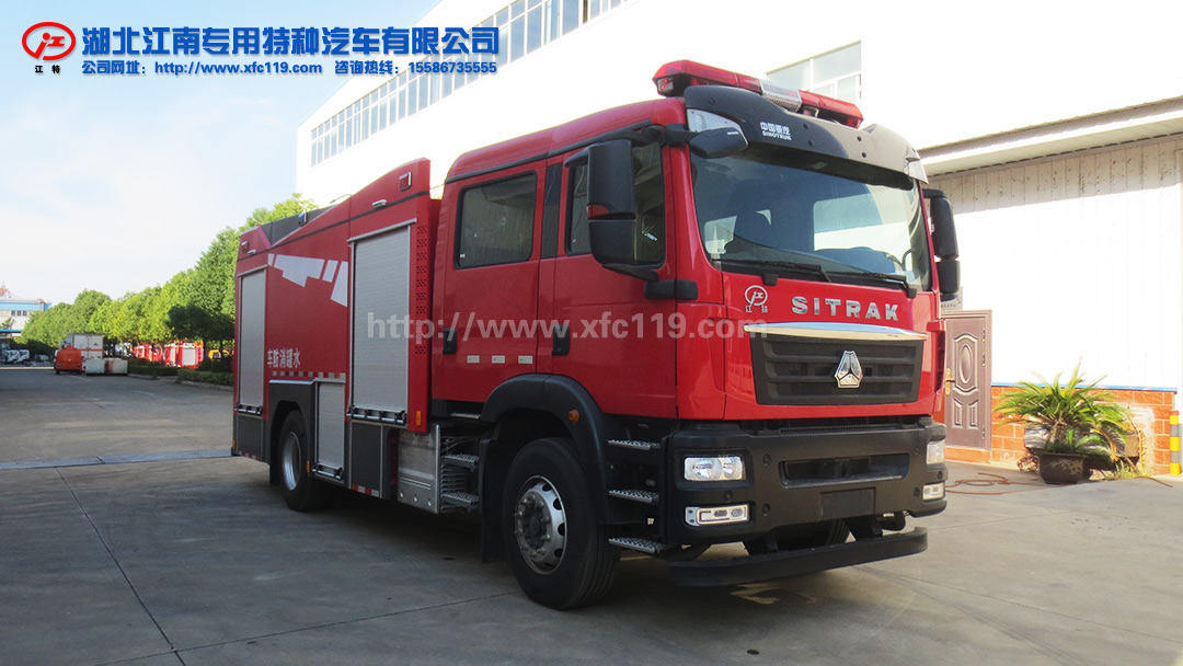 JDF5180GXFPM70/Z6型泡沫消防車采用中國重汽集團濟南商用車ZZ5206N471GF5底盤改裝而成。整車由消防員乘員室和車身兩大部分組成,乘員室為原裝雙排,可乘坐2+4人,該車為外露罐結構,車身前部為器材箱,中部為罐體,后部為泵房。載液罐體為優質碳鋼,內部噴涂環氧底漆及環氧瀝青漆,與底盤采用彈性連接,載水5000kg,泡沫2500-3000kg,裝備了上海雄真消防設備有限公司生產CB10/60-XZ型常壓消防泵,額定流量60L/S,車頂安裝成都威斯特消防機械有限公司生產的PL48型車用泡沫消防炮。該車最大的特點是載液量大、操控性好、維修簡便?蓮V泛應用于公安消防隊、廠礦企業及社區、碼頭等場所,撲救大型油類火災和一般物質火災。