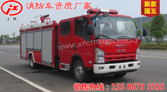 五十鈴江特牌JDF5100GXFSG30/Q水罐消防車,軸距4475MM,190馬力,上戶噸位3.1噸