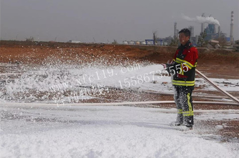 演練中使用的湖北江南專用特種汽車限公司制造的裝載德國CAFS系統的石油石化工業主戰消防車 。