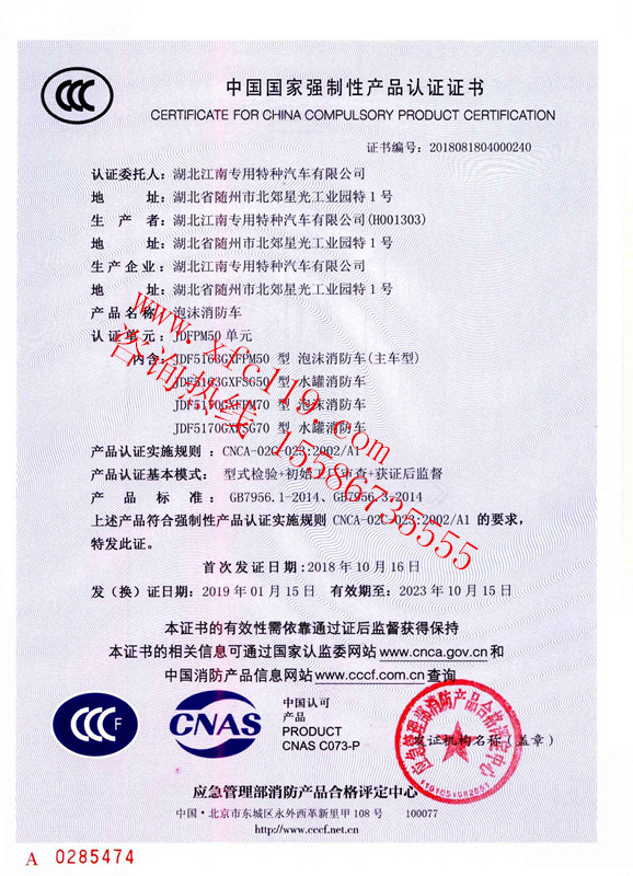 我公司湖北江南專用特種汽車有限公司一直致力于創新研發新型消防車車型,目前又有2類國五消防車車型的3C已經審批下發。
