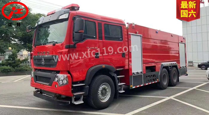 JDF5314GXFPM160/Z6型泡沫消防車為國六消防車車型,采用重汽豪沃ZZ5357TXFV464MF5底盤改裝而成。整車由消防員乘員室和車身兩大部分組成,乘員室為原裝雙排,可乘坐2+4人,該車為外露罐結構,車身前部為器材箱,中部為水罐,后部為泵房。載液罐體為優質碳鋼,內部噴涂環氧底漆及環氧瀝青漆,與底盤采用彈性連接,載水量12500kg,泡沫液量35800kg,裝備了上海茸申消防設備有限公司生產CB10/60-RS型中低壓消防泵,額定流量60L/S,車頂安裝成都威斯特消防機械有限公司生產的PL8/48型車用消防炮。該車最大的特點是載液量大、操控性好、維修簡便。可廣泛應用于公安消防隊、廠礦企業及社區、碼頭等場所,撲救大型油類火災和一般物質火災。